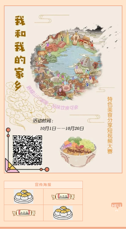 和西北工业大学学生九州美食文化协会联合承办的“我和我的家乡”特色美食分享短视频大赛十月份在线上开展。该活动希望同学们可以在视频中展现出各地的特色,传递每个地区的美食文化!