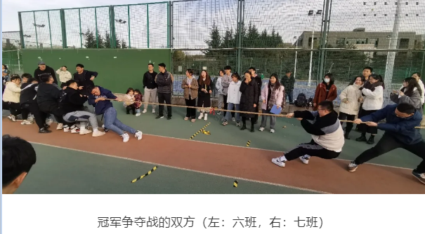 研究生会于11月21日下午在星天苑操场举办了学院2021级研究生“迎新杯”拔河比赛。经过三轮激烈角逐,七班获得了此次比赛的冠军,六班、三班分别获得亚军、季军。