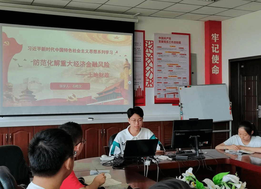石皓文同志以土地财政的历史展开学习讲解,为支部党员同志们详细介绍了土地财政、土地金融以及如何防范化解重大经济金融风险。同时,石皓文同志结合大家日常生活中与住房的紧密联系,生动介绍了房地产税的改革进行。在过去十来年间,土地财政带动中国城市建设突飞猛进,但这并不意味着我们能忽视它所带来的问题,因此改革只有进行时,没有完成时,我们每一位党员也都应担起责任、在所不辞。