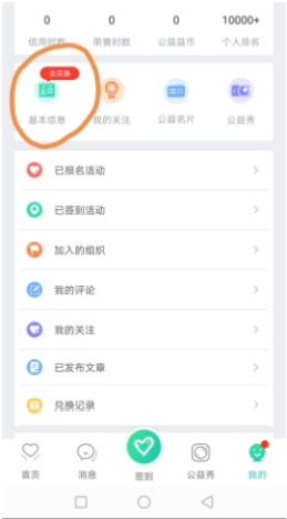 11. 完善信息:进入“我的”页面,点击基本信息