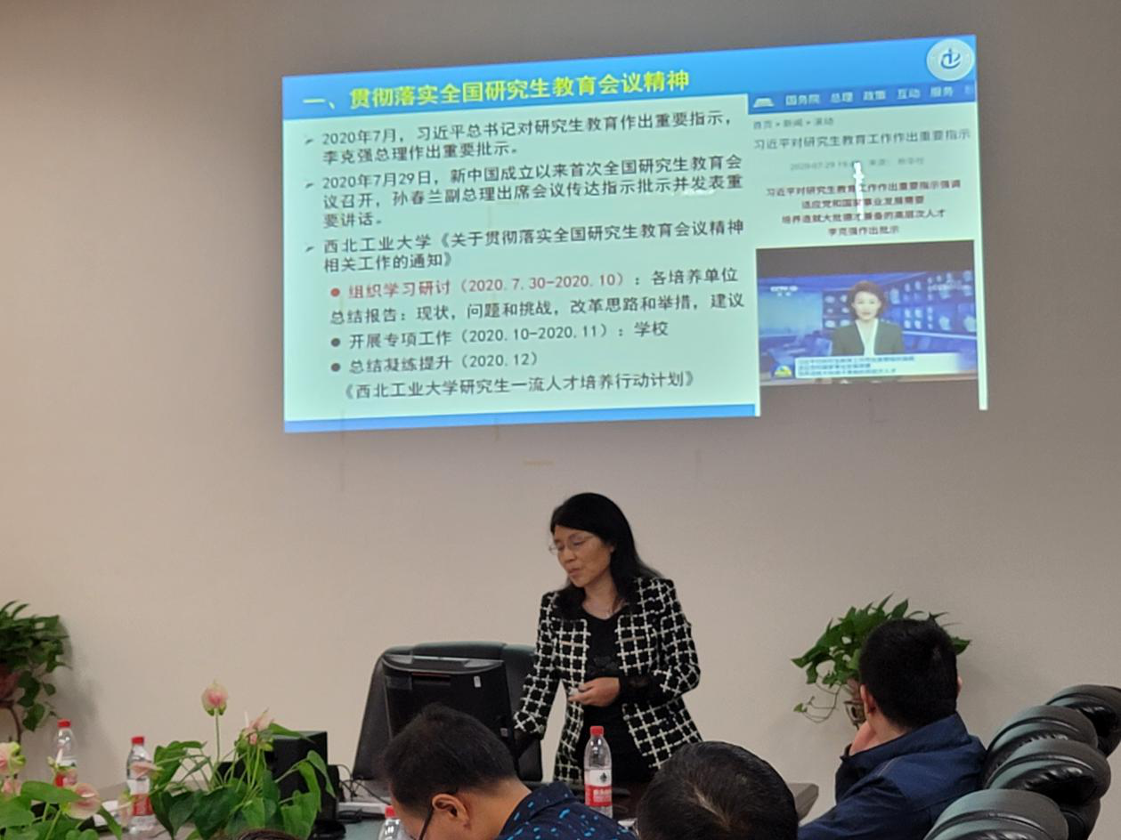 学院副院长冯晓毅就本学期研究生工作进行部署,一是要深入贯彻落实全国研究生教育会议精神,推动学院研究生教育培养实现高质量发展;二是要就硕士研究生招生指标分配办法广泛征求意见,科学制定资源配置管理办法,调动教师积极性,开创学院研究生教育工作新局面。